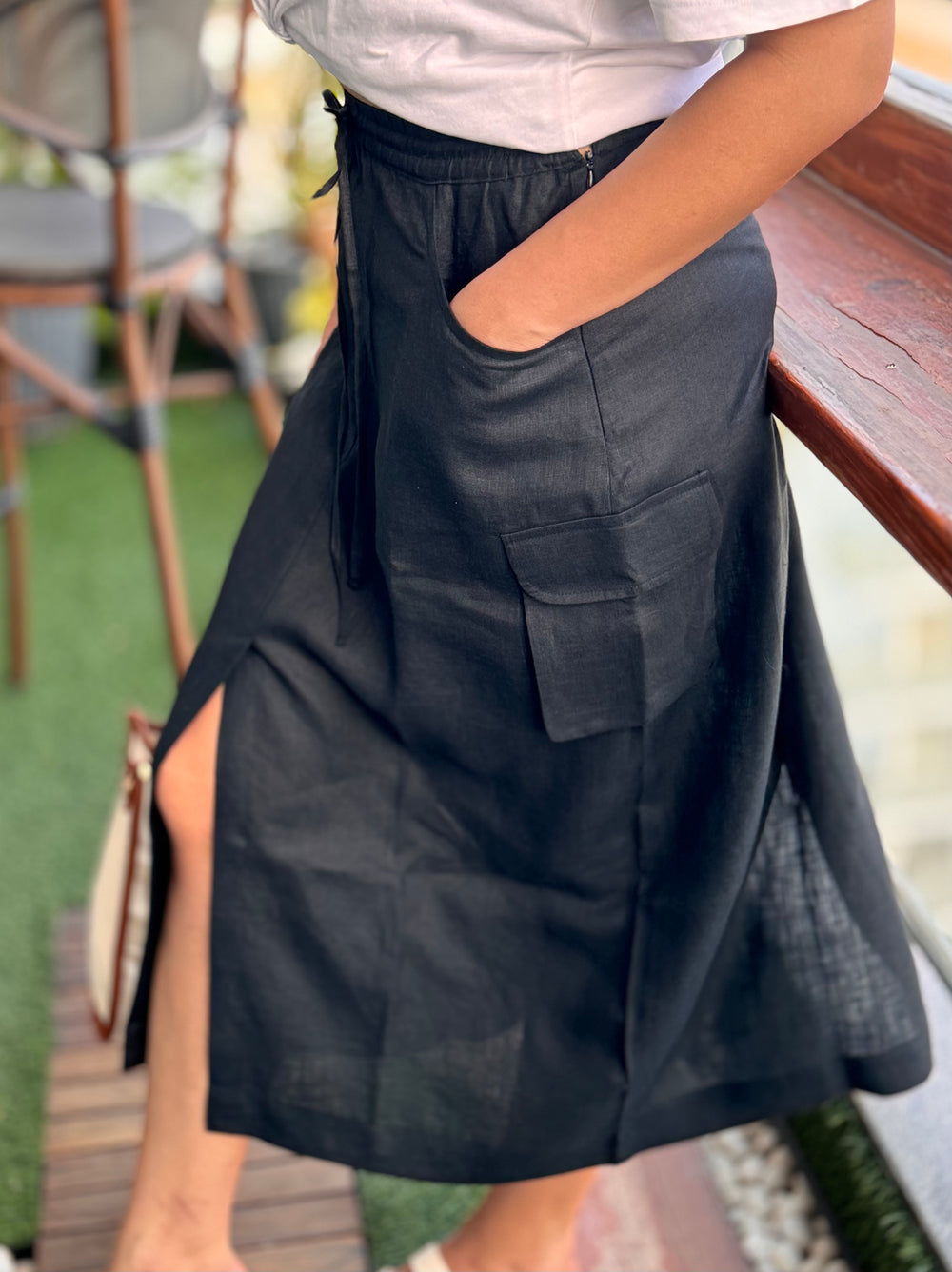 Introducing the Carga Skirt - the ultimate combination of streetwear and functionality! This cozy mid-length skirt features utility pockets and a drawstring elasticated waist for convenience. With side closures and front/back slits, you'll have the freedom to move while looking stylish.